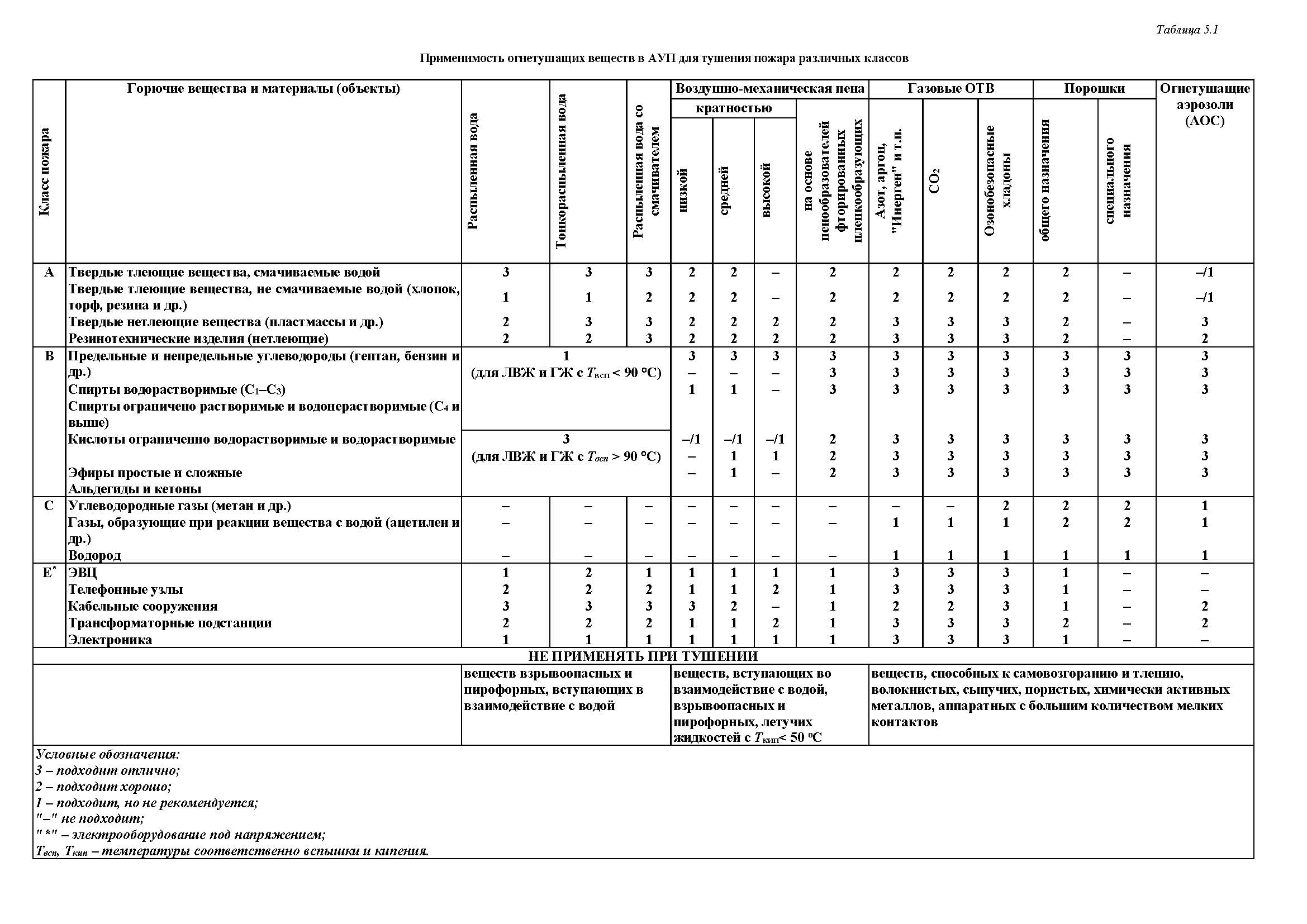 Определение и выбор огнетушащих веществ с учётом пожарной опасности