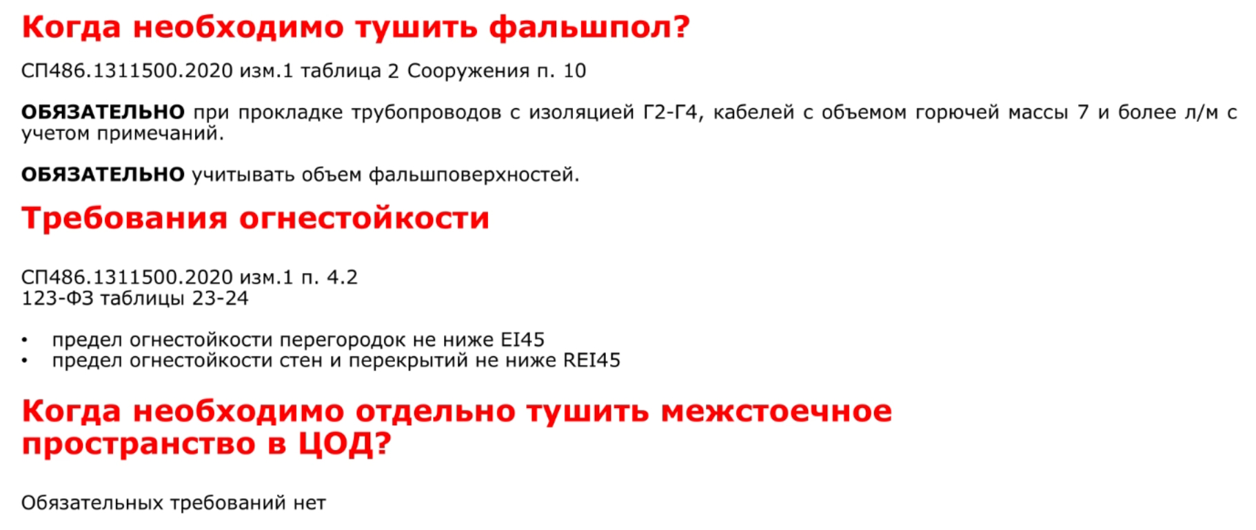 - Особенности расчётов по СП 485.1311500.2020