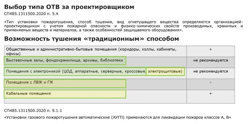 СП 486.1311500.2020 задаёт алгоритм, по которому проектировщик определяет необходимость применения автоматических установок. В нем есть перечень помещений, сооружений и зданий а так же оборудование, которое подлежит защите теми или инны и установками. В частности установками пожаротушения или пожарной сигнализации, либо вообще ничем.